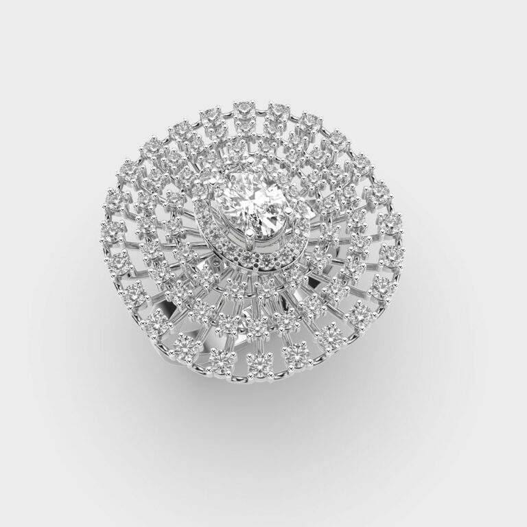 แหวนเพชรฮาโลประกายแวววาวแวววาวแวววาวพร้อมด้วยหินเจียระไนทรงรีสำหรับปลูกในห้องปฏิบัติการและฝังเพชรหรูหราได้รับการออกแบบให้เป็น