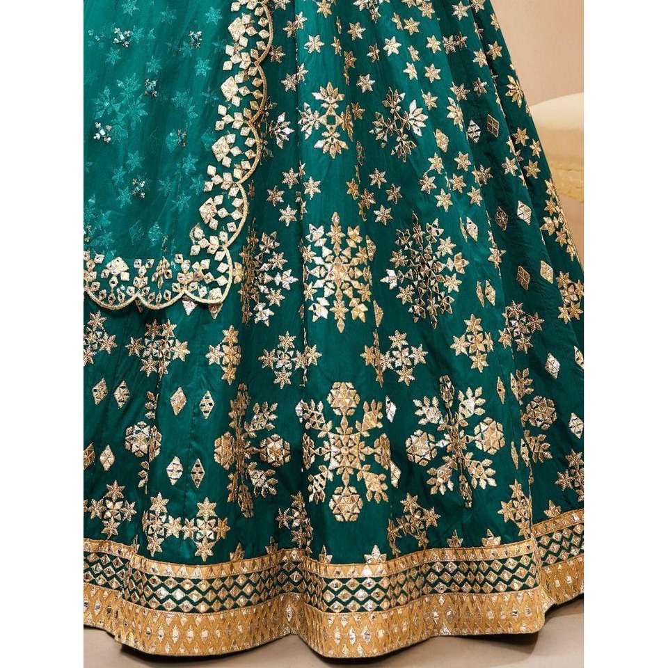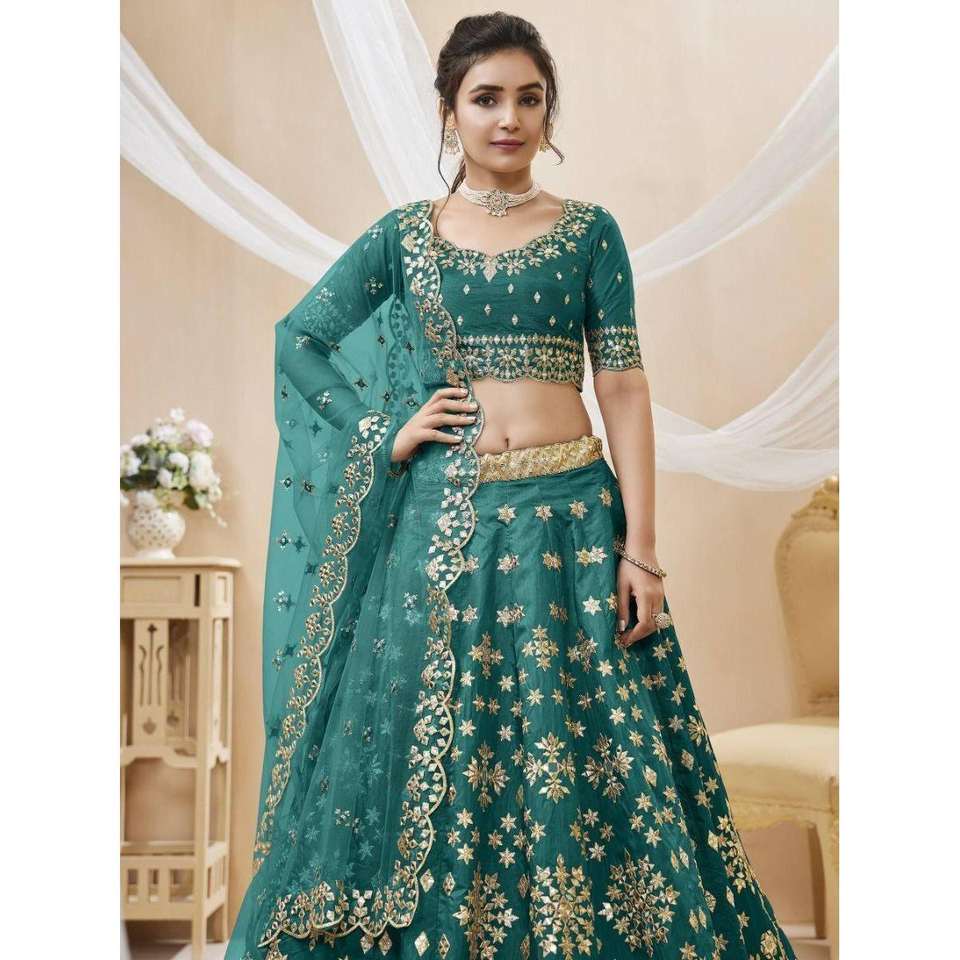 ผ้าไหมปักลายศิลปะสีน้ำเงินอมเขียวแวววาวสำหรับเพื่อนเจ้าสาว lehenga choli