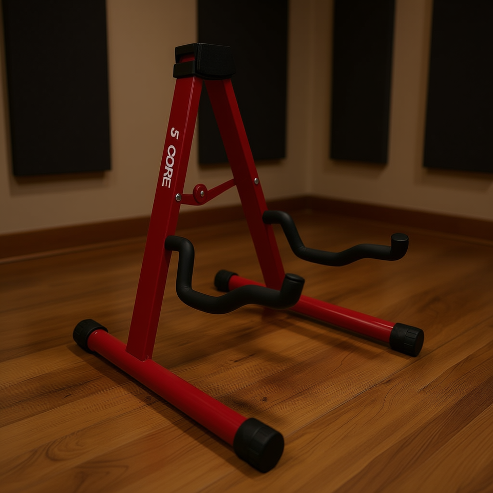ขาตั้งกีตาร์แบบพับได้ 5 ขา รุ่น Core Double สีแดง โครงเหล็ก สำหรับกีตาร์โปร่ง กีตาร์ไฟฟ้า เบส แมนโดลิน เชลโล