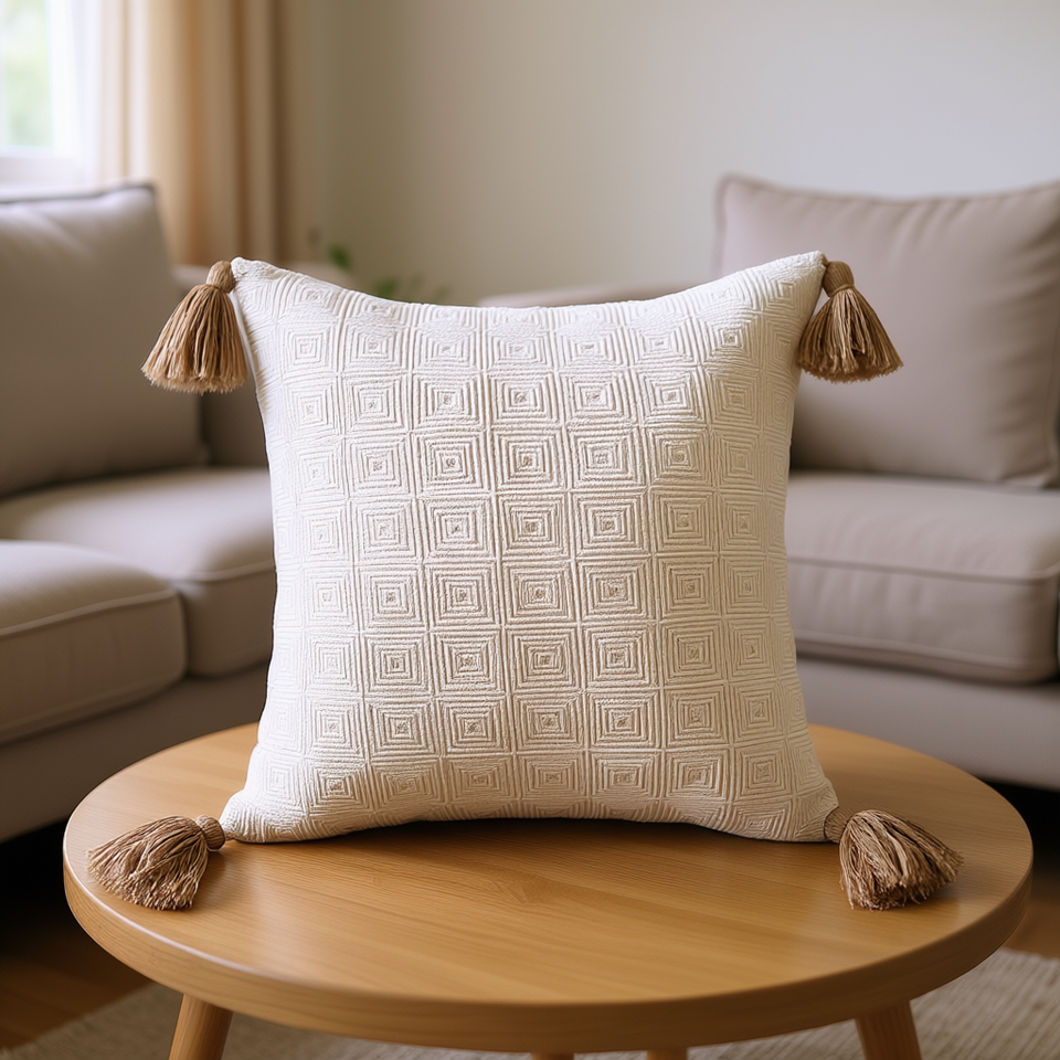 ปลอกหมอนอิงผ้าฝ้ายปักลายเรขาคณิตสีเบจขนาด 50 ซม. รุ่นพกพาสุดหรู
