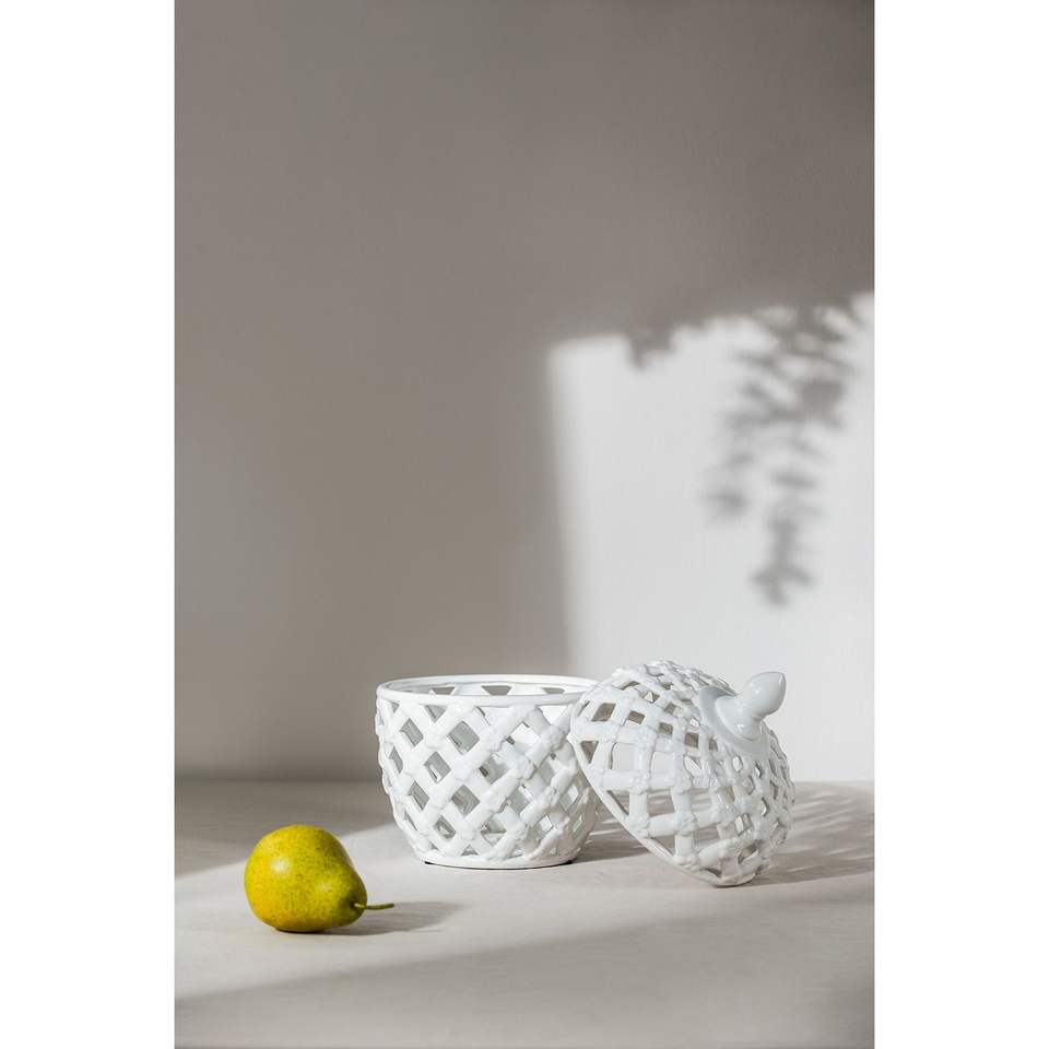 โถเซรามิกทรงเรขาคณิตมีฝาปิด รุ่น DB Bird ขนาด 8.5x11.5 ซม. ของตกแต่งบ้านสำหรับวางบนโต๊ะ ดีไซน์ร่วมสมัย