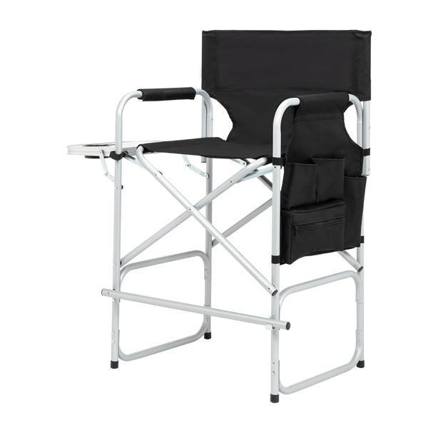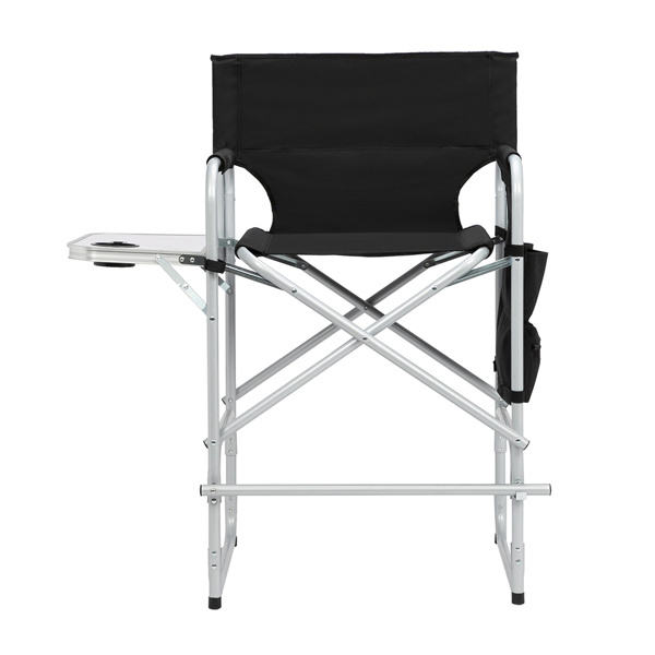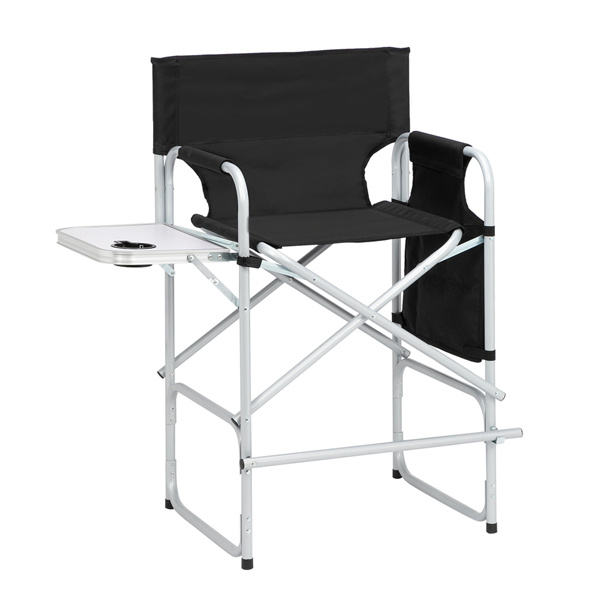 เก้าอี้ผู้บริหารแบบพับได้ รุ่น DB ขนาด 103x60x499 ซม. ผ้าสีดำ โครงเหล็กสีเงินขาว สำหรับใช้งานกลางแจ้งในสวน พร้อมโต๊ะข้าง