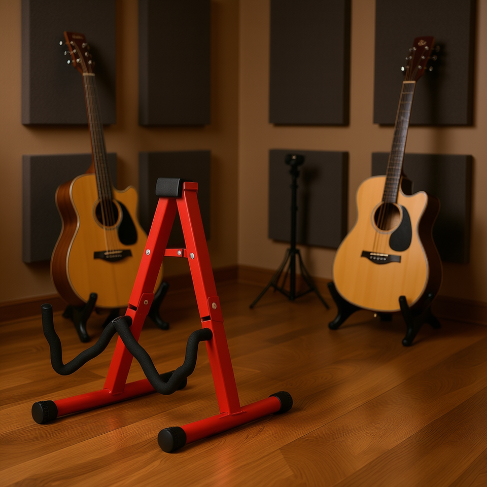 ขาตั้งกีตาร์คู่แบบพับได้ สีแดง ทำจากเหล็ก พกพาสะดวก สำหรับกีตาร์โปร่ง กีตาร์ไฟฟ้า เบส แมนโดลิน ปรับระดับได้