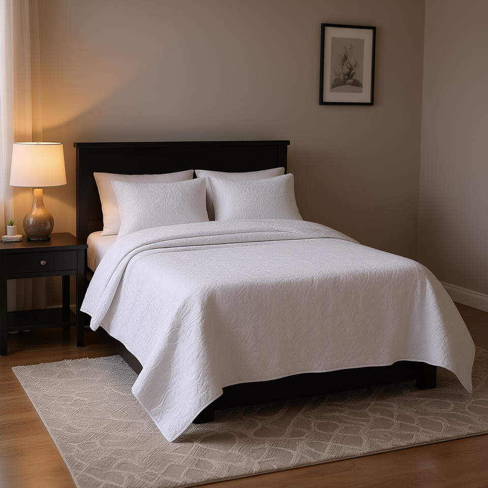 ชุดผ้านวมลายดอกไม้แบบกลับด้านได้ 3 ชิ้น ขนาดควีนไซส์ บรรจุใยขนสัตว์ สำหรับใช้ในบ้าน โรงแรม งานแต่งงาน สีขาว