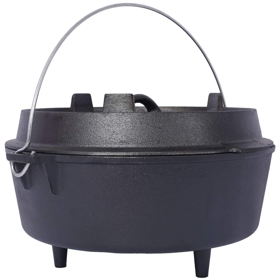 หม้อเหล็กหล่อเคลือบพร้อมฝาปิดสำหรับตั้งแคมป์ ใช้กับเตาผิง ทำอาหารกลางแจ้ง ขนาด 12 นิ้ว หม้อทรงลึกสำหรับอบและทำอาหารประเภทแคสเซอโรล