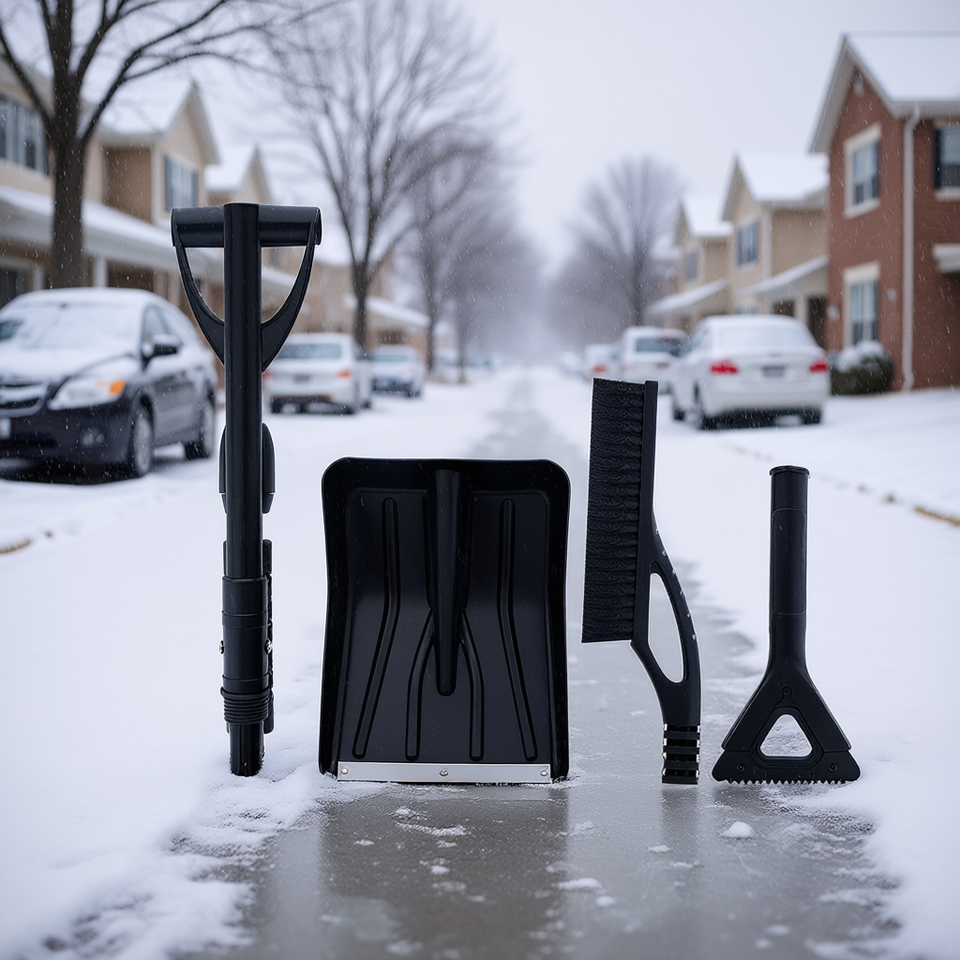 พลั่วตักหิมะพร้อมที่ขูดน้ำแข็ง ด้ามจับยืดหดได้ สีดำ รุ่น D0100H5U7D2 สำหรับขจัดน้ำแข็งบนรถยนต์