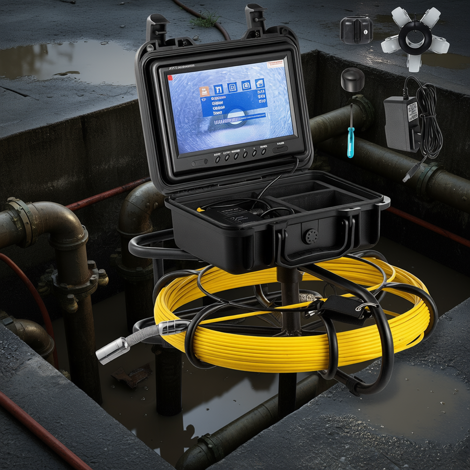 กล้องตรวจสอบท่อระบายน้ำ Db Wholesale 150 ฟุต หน้าจอ 9 นิ้ว กันน้ำระดับ IP68 พร้อมฟังก์ชั่นบันทึก DVR บนการ์ด SD 8GB
