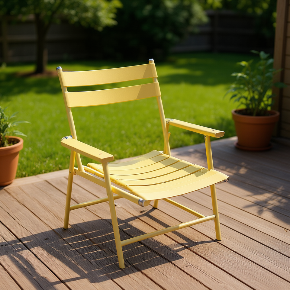เก้าอี้พับได้สีเหลืองสำหรับสวน ทำจากอลูมิเนียม เฟอร์นิเจอร์กลางแจ้ง ดีไซน์มินิมอล สไตล์ร่วมสมัย