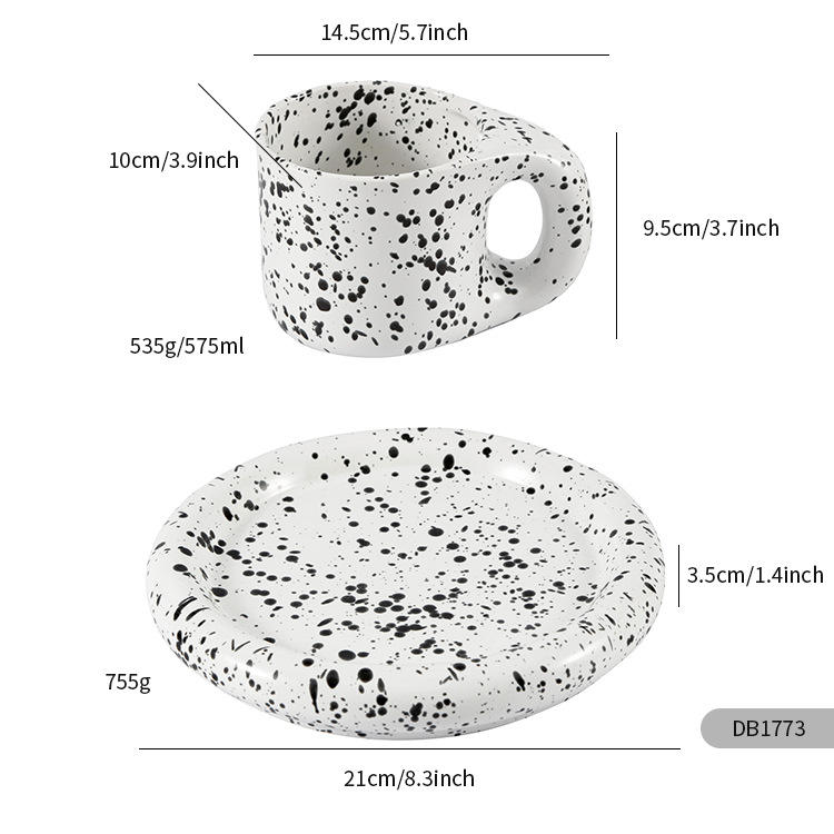 แก้วกาแฟเซรามิก Db1773 ลายจุด 575 มล. ผิวด้าน สำหรับใช้ในบ้าน สไตล์ยุโรป
