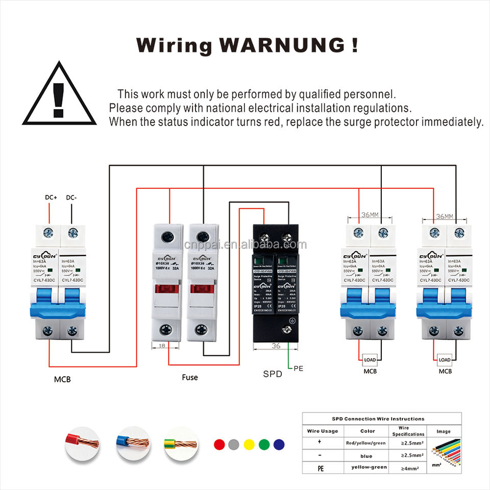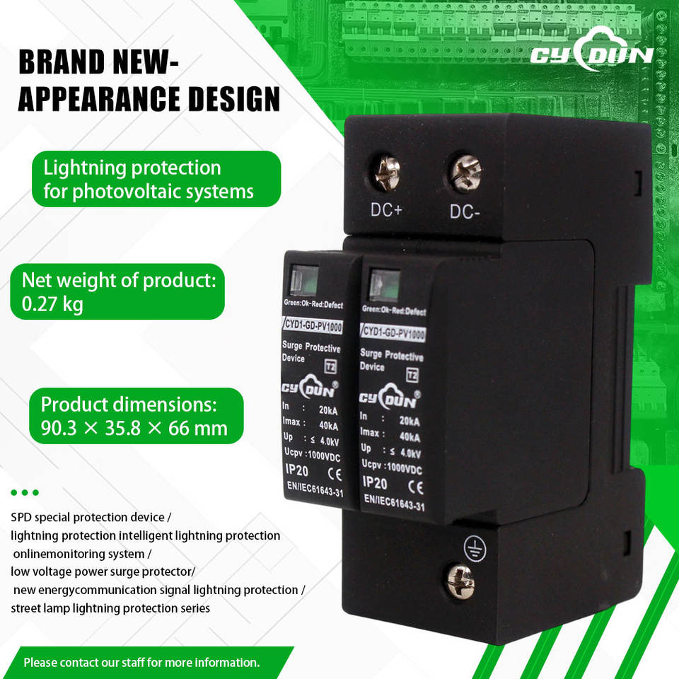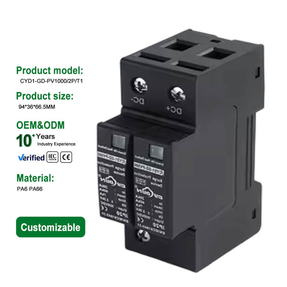 40KA DC SPD 2P 1000V T1/T2อุตสาหกรรมป้องกันไฟกระชากสำหรับระบบโซล่าเซลล์ป้องกันวงจร AC 220V/320V
