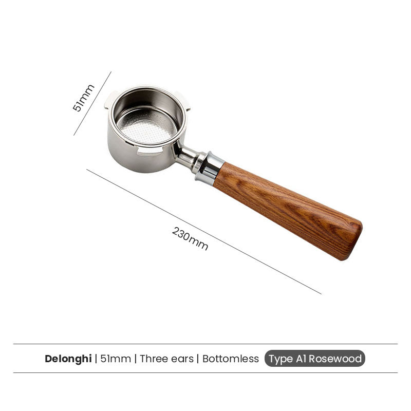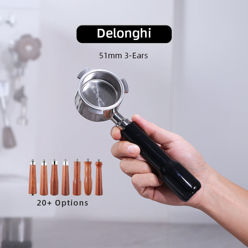 ด้ามจับกาแฟแบบไม่มีก้น (Bottomless) หรือแบบสองหัวจ่าย (Dual Spouts) ขนาด 51 มม. พร้อมหูจับ 3 หู สำหรับเครื่องชงกาแฟเอสเพรสโซ De'Longhi รุ่น EC680 EC685