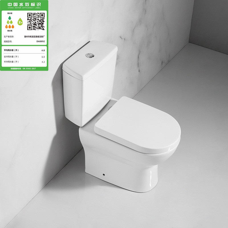 โถสุขภัณฑ์แบบสองชิ้น De Ouvenor รุ่นมาตรฐาน สไตล์ยุโรป ระบบชำระล้าง 3 ลิตร ทำความสะอาดง่าย ผลิตจากเซรามิก รับน้ำหนักได้ 200 กก.