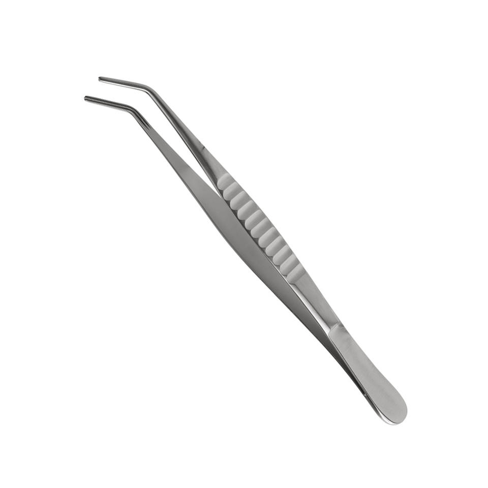 คีมจับเนื้อเยื่อแบบโค้งฟันหยัก DeBakey Atraumatic ขนาด 16 ซม. เครื่องมือความแม่นยำสูง สำหรับการจัดการเนื้อเยื่อที่ละเอียดอ่อน ทำจากสแตนเลส