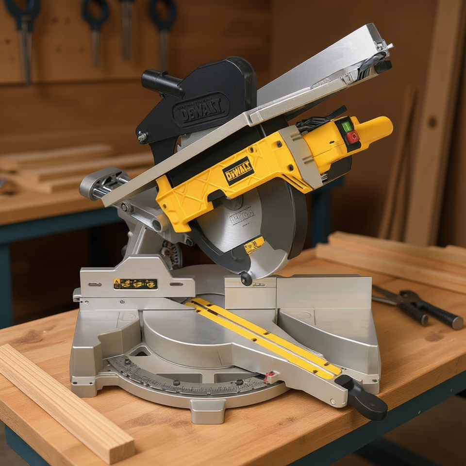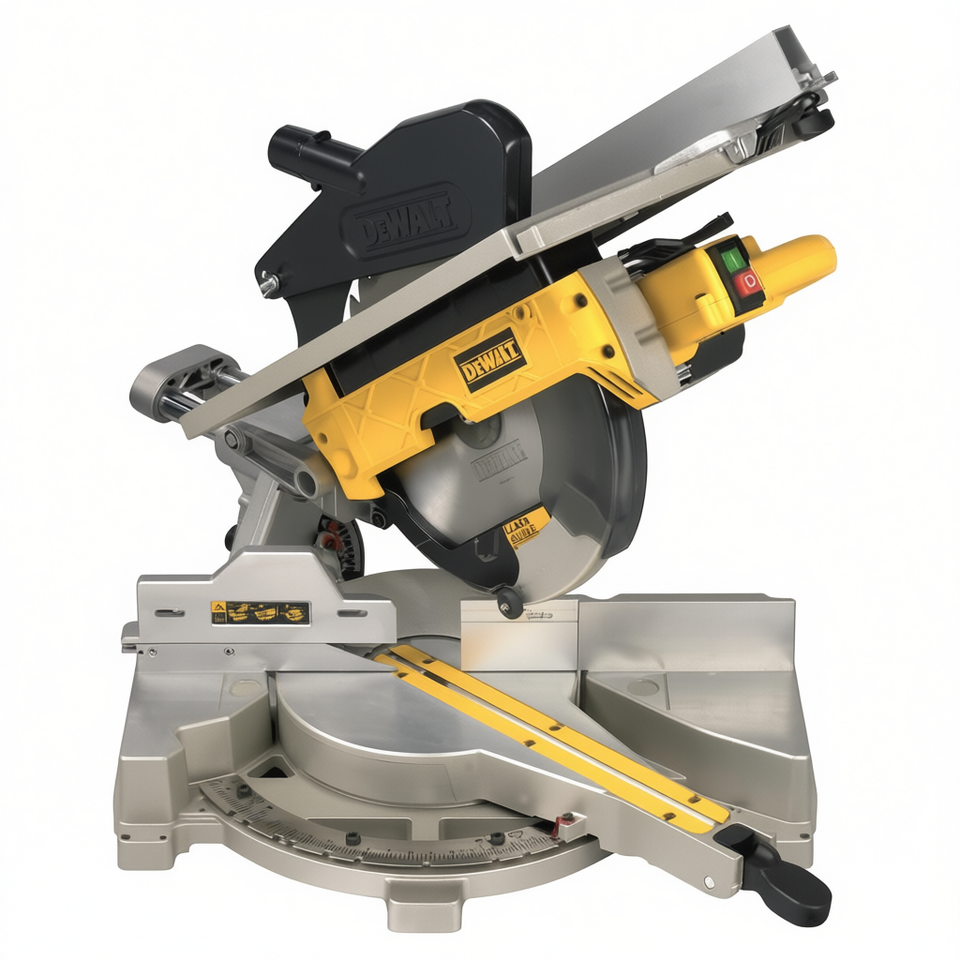 เลื่อยองศาเดวอลท์ 10 นิ้ว แบบเลื่อนได้สองทิศทาง พร้อมเลเซอร์นำทางสำหรับตัดไม้