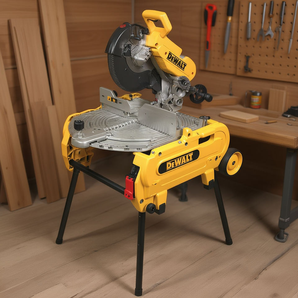 เลื่อยองศาเดวอลท์ 10 นิ้ว พร้อมขาตั้งและล้อ สำหรับตัดไม้