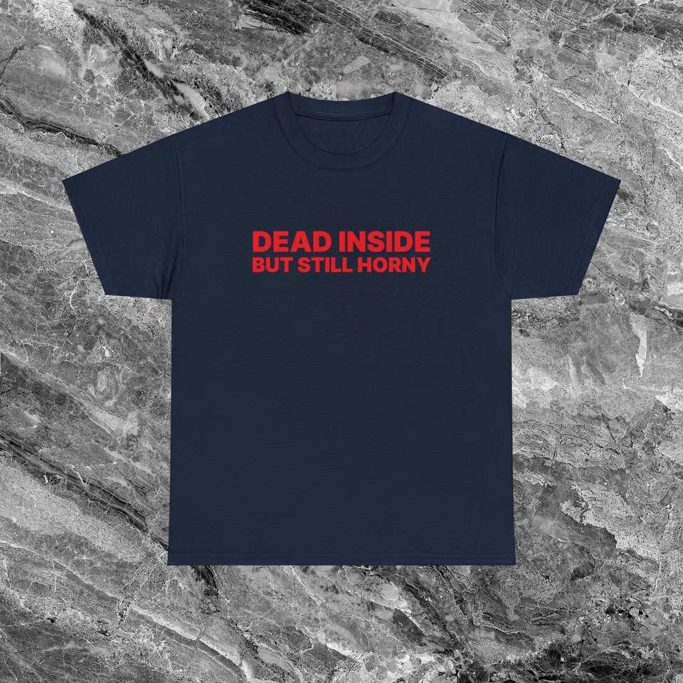เสื้อยืดเดด อินไซด์ บัท สติล ฮอร์นี่ ยูนิเซ็กส์ คอกลม แขนสั้น พิมพ์ลายสกรีน เสื้อโปรโมชั่น สไตล์เจน ซี