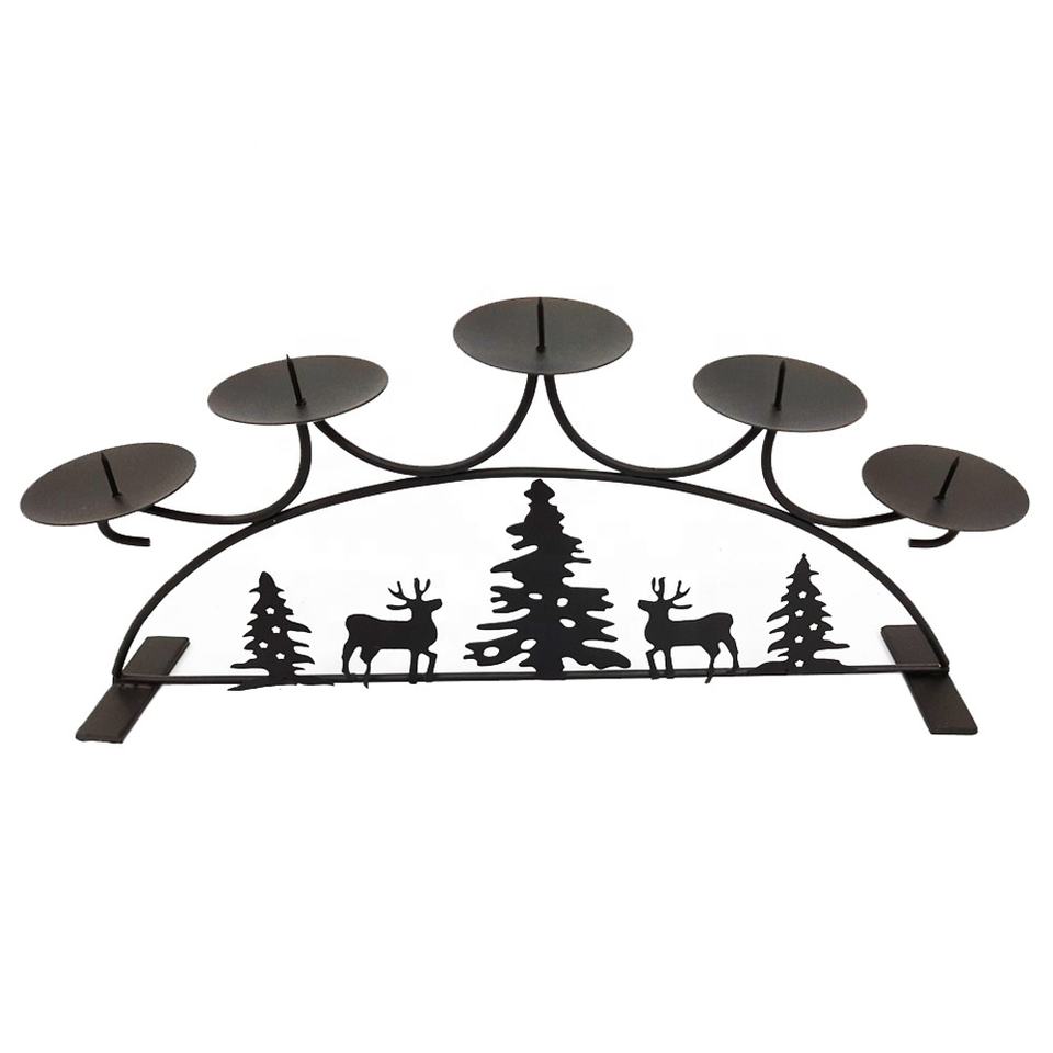 Dead Matt สีดําที่สวยงามเหล็กโลหะ 5 เทียนถือเสาเทียนที่วางเทียนที่ทันสมัยขาตั้งเทียนทําด้วยมือ