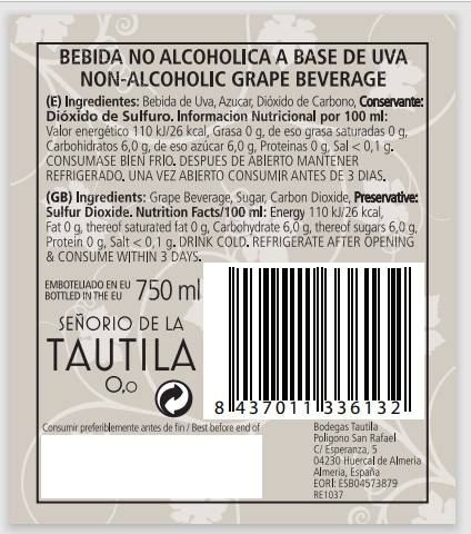เนื้อหา:Vino espumosodesalcohizado 0'0