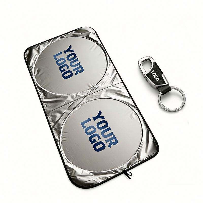 ของขวัญส่งเสริมการขายสำหรับตัวแทนจำหน่าย ร่มบังแดดพับได้ติดกระจกรถยนต์ โลโก้สั่งทำได้ ผ้าโพลีเอสเตอร์ ขายส่ง