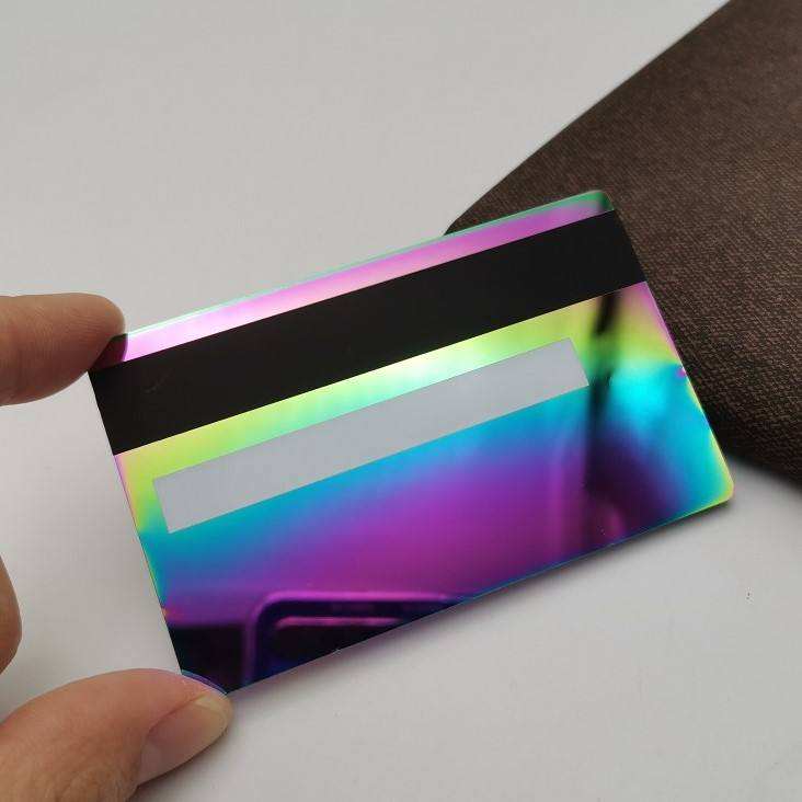 บัตรเครดิตโลหะกระจกสีทอง24K สีรุ้ง
