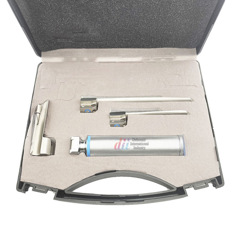 ชุดเครื่องมือส่องกล่องเสียงสัตว์เลี้ยงแบบ LED สแตนเลส Debonairii พร้อมใบมีด 3 แบบ เปิดด้านขวา สำหรับการให้ยาสลบและใส่ท่อช่วยหายใจในสุนัขและแมว 1