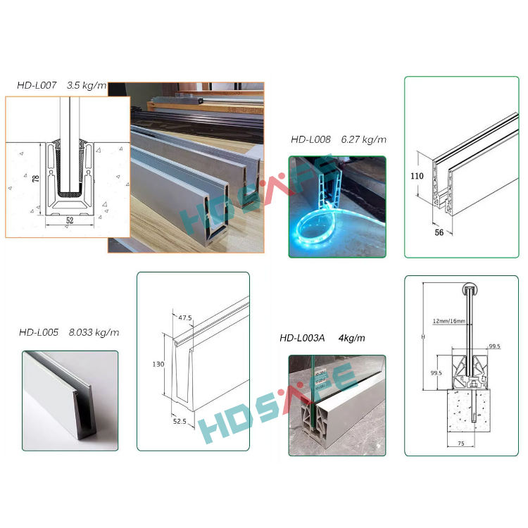 โรงงานผลิตราวบันไดกระจกไร้กรอบสำหรับระเบียง ราวบันไดอะลูมิเนียม ตัวหนีบฐานรั้วกระจกกลางแจ้ง ราวบันไดกระจก รางรูปตัวยู