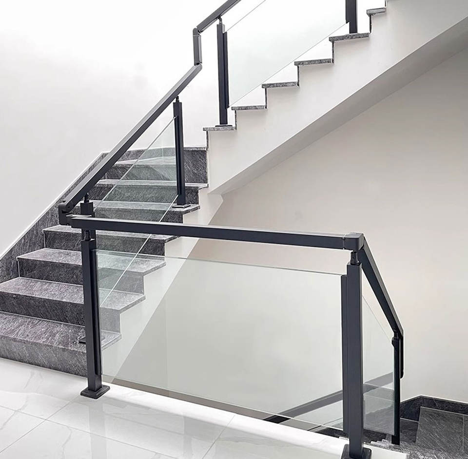 โรงงานผลิตราวบันไดกระจกแบบไร้กรอบ ระเบียงอะลูมิเนียมพร้อมฐานสำหรับระเบียง บันได และเฉลียง