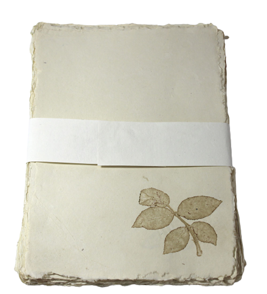 ชุดเครื่องเขียนกระดาษฝ้ายทำมือรีไซเคิลพร้อมลายใบไม้สดจริง กระดาษหัวจดหมายขนาด A4 ขอบดิบ (ขอบธรรมชาติ)