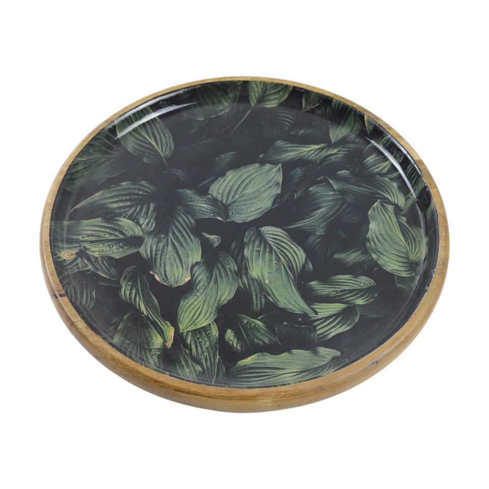 ชื่อสินค้า:จานเสิร์ฟทรงกลมลายพิมพ์ ถาดเสิร์ฟไม้