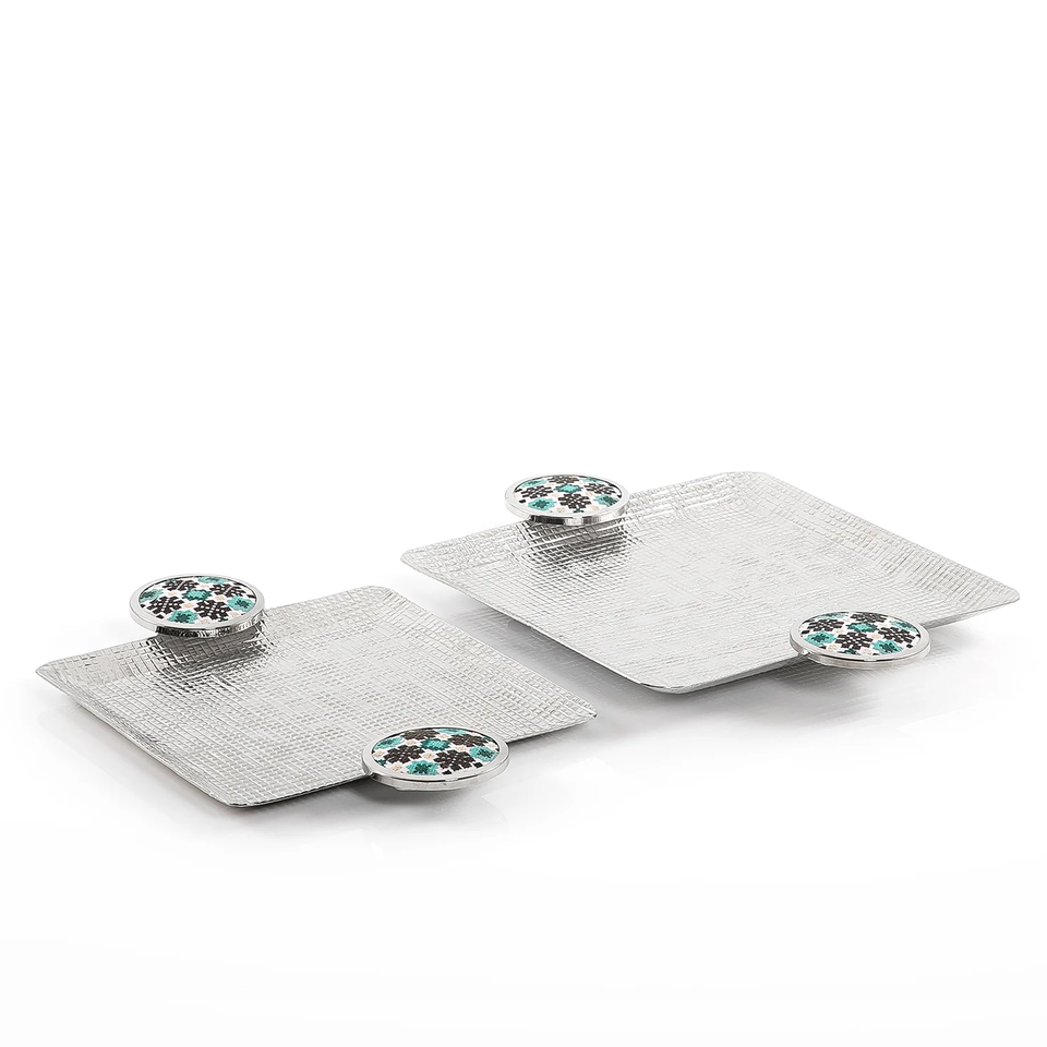 ตกแต่งจัดเลี้ยงเสิร์ฟการใช้งานมาใหม่กําลังมองหา S/2 โลหะ Dual โทนเสิร์ฟเสร็จสิ้นถาดจานสําหรับงานแต่งงานบนโต๊ะ