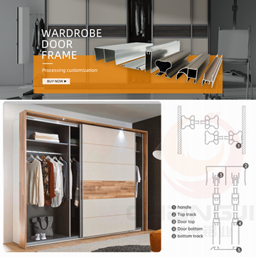 กรอบประตูตู้เสื้อผ้าอะลูมิเนียมแบบกำหนดเอง โปรไฟล์ประตูบานเลื่อนตู้เสื้อผ้า
