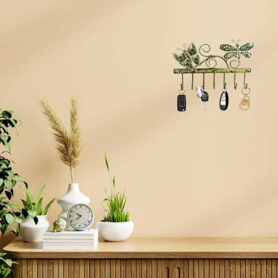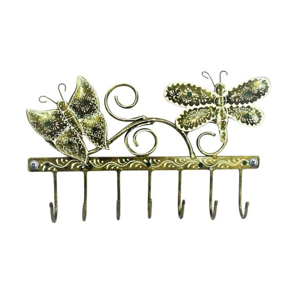 ที่แขวนกุญแจรูปผีเสื้อ 2 ตัว 7 ตะขอ งานแฮนด์เมดจากเหล็ก สำหรับตกแต่งบ้าน ทางเข้า สำนักงาน และงานเทศกาลดีวาลี
