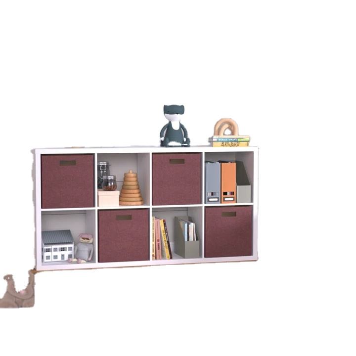 ตู้หนังสือตกแต่ง6คิวบ์พร้อมถังผ้าพรีเมียมชั้นวางหนังสือดีไซน์ทันสมัยทำจากไม้แบบลอยน้ำได้ฟรี