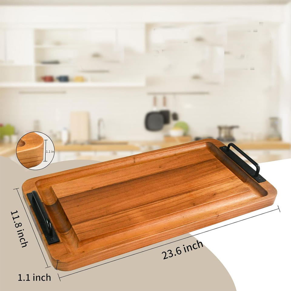 ชื่อผลิตภัณฑ์:ถาดเสิร์ฟทรงสี่เหลี่ยมทำจากไม้อะคาเซียพร้อมที่จับ