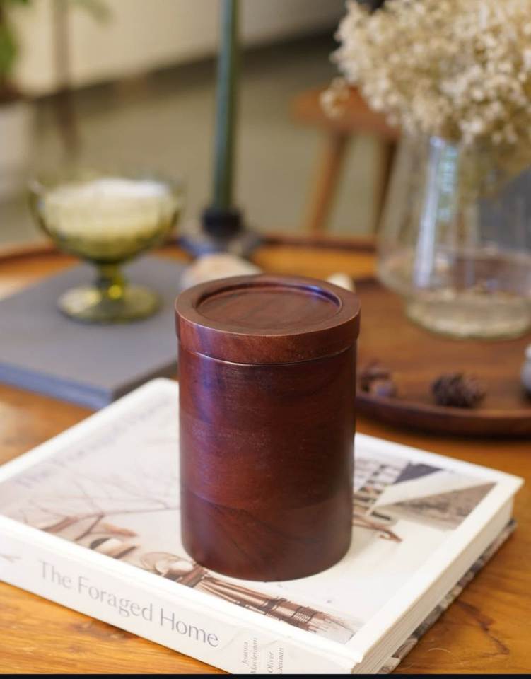 โถไม้กระถินเทศสีน้ำตาลเข้มพร้อมฝาปิด ภาชนะเก็บผลไม้อบแห้งคุณภาพพรีเมียม กล่องผลไม้อบแห้งทรงกลมทำจากไม้ ของขวัญสำหรับเทศกาลดีวาลี