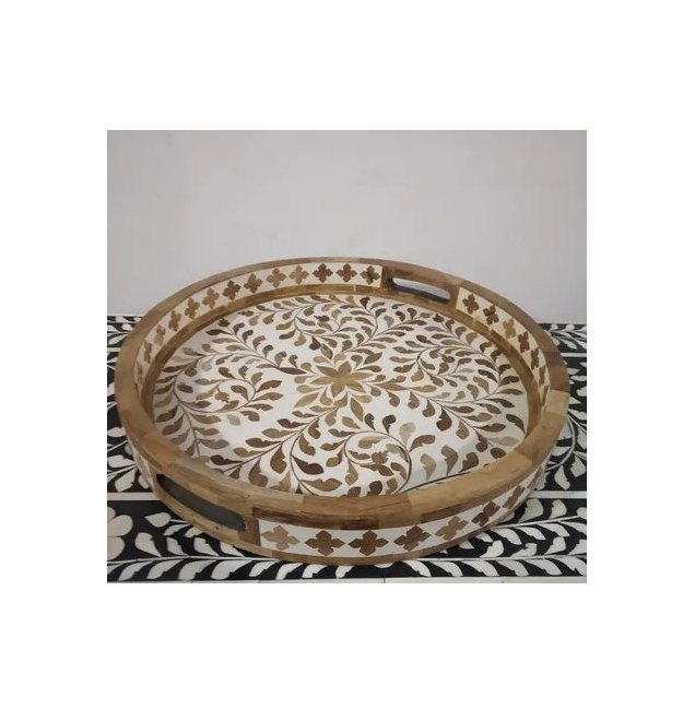 Decorative Accents Wood & Mother of Pearl Chocolate Tray Square Shape MOP Flower design Wedding Parties Used