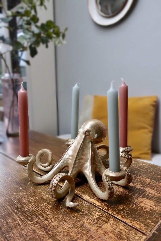 ที่วางเทียนรูปปลาหมึกอะลูมิเนียมตกแต่ง สร้างสรรค์ขึ้นเพื่อเพิ่มความสวยงามให้กับโต๊ะอาหารด้วยเสน่ห์สไตล์ทะเลที่เป็นเอกลักษณ์