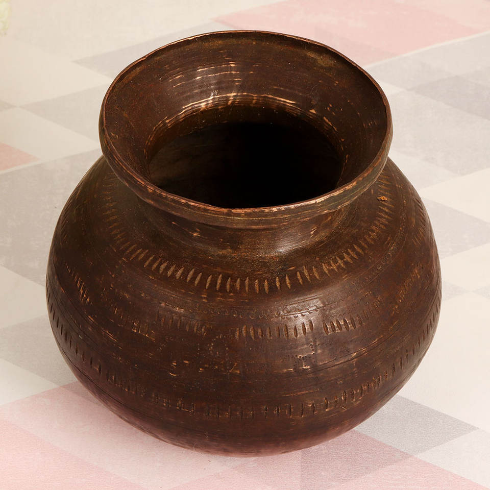 Dark Finish Brass Holy Water Pot for Decoration and Collection