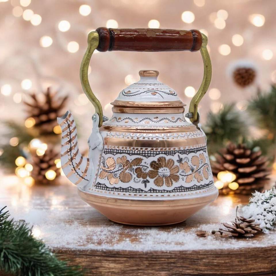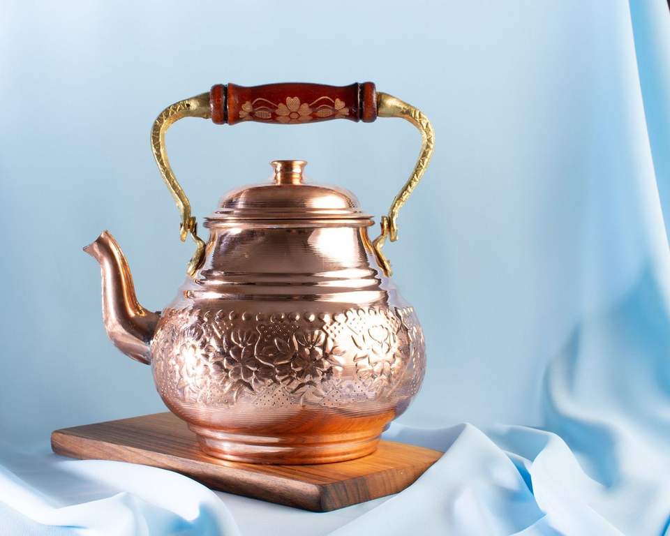 กาต้มน้ำทองแดงโบราณตกแต่งสวยงาม สำหรับเสิร์ฟชา ต้มน้ำ และตกแต่งโต๊ะอาหารสไตล์เรสติก