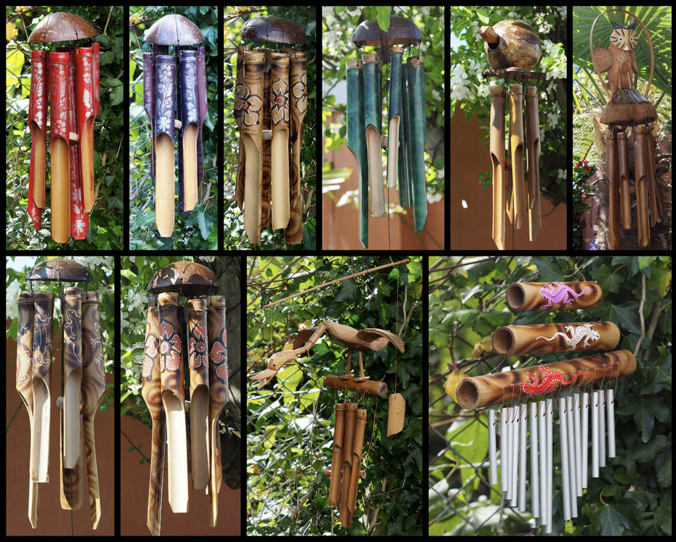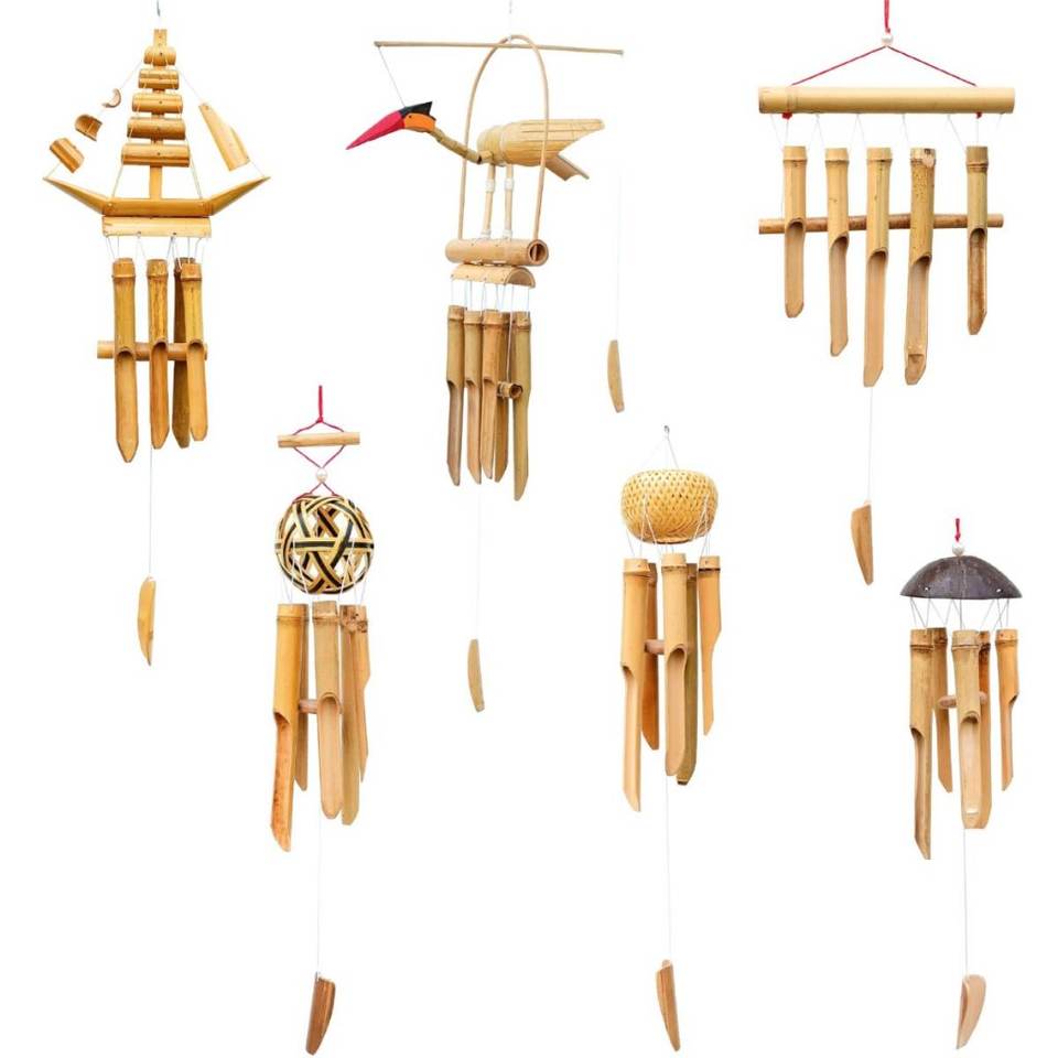 กระดิ่งลมไม้ไผ่ตกแต่งด้วยโทนสีที่เงียบสงบสำหรับลานระเบียงหรือการตกแต่งห้องนั่งเล่น