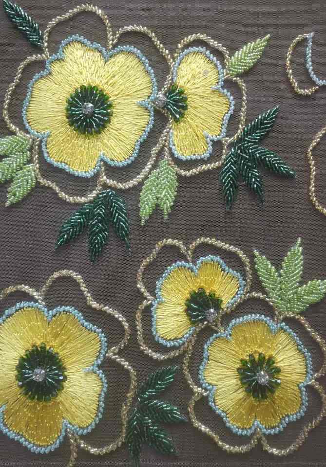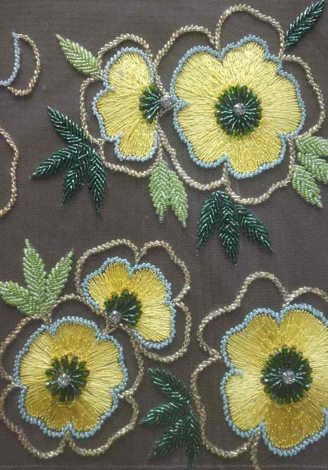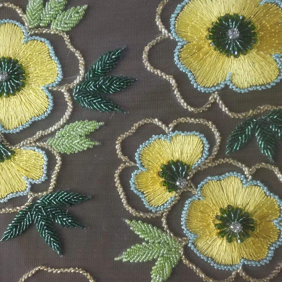 ผ้าลูกไม้ประดับลูกปัดปักลายดอกไม้เหมาะสำหรับจัดแต่งทรงผมจาก lehenga สำหรับงานแต่งงานและในโอกาสเทศกาล