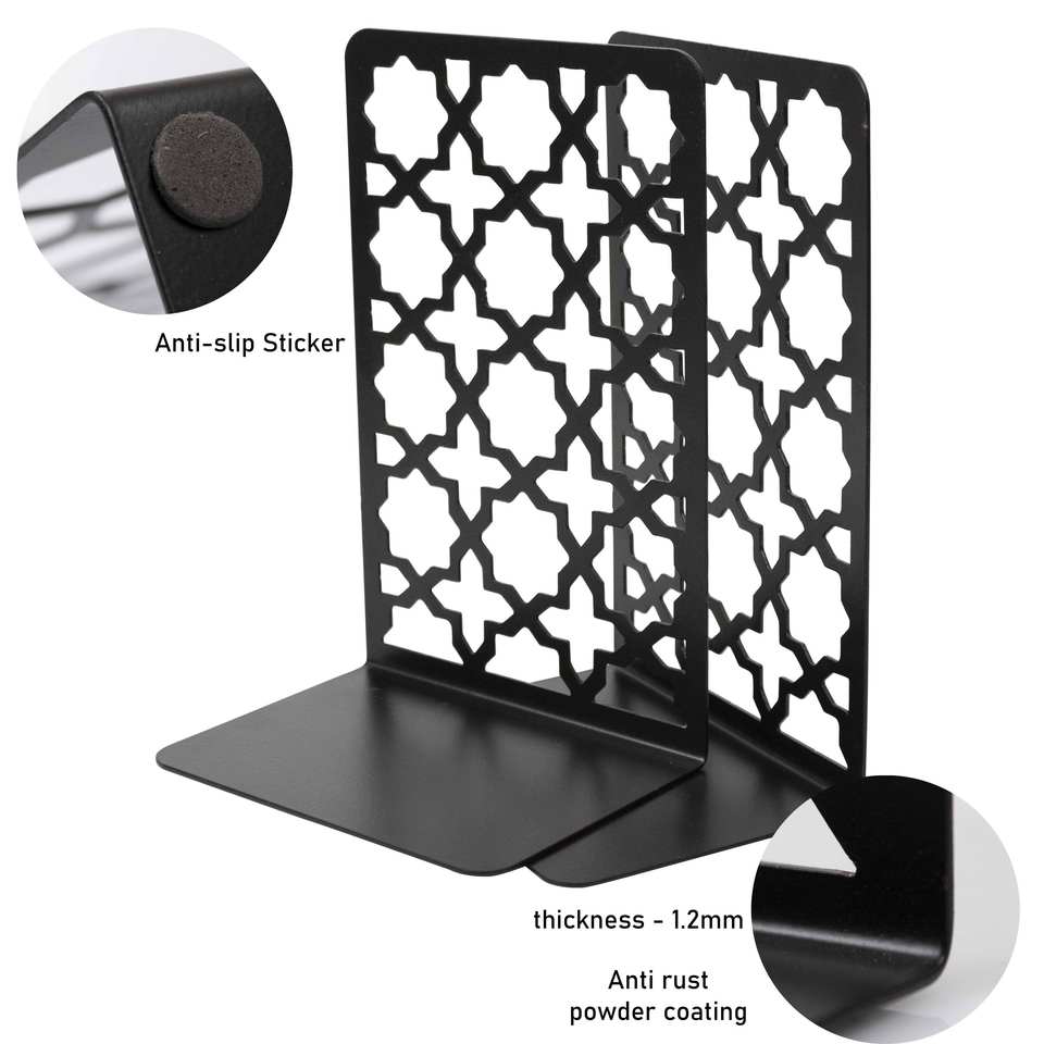 ที่วางหนังสือโลหะสีดำตกแต่งลายดาว สำหรับจัดระเบียบหนังสือบนโต๊ะทำงาน ใช้สำหรับตกแต่งชั้นวางหนังสือที่บ้านและที่ทำงาน