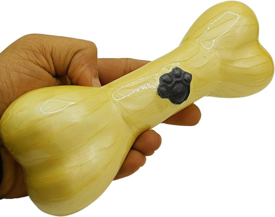 โกศสัตว์เลี้ยงอลูมิเนียมรูปกระดูกตกแต่งโลงศิลาพร้อมเครื่องหมายอุ้งเท้าแกะสลักด้วยมือสําหรับเถ้าสัตว์เลี้ยงพร้อมขาตั้งจอแสดงผล - ไม่ซ้ําใคร (สีเหลือง)