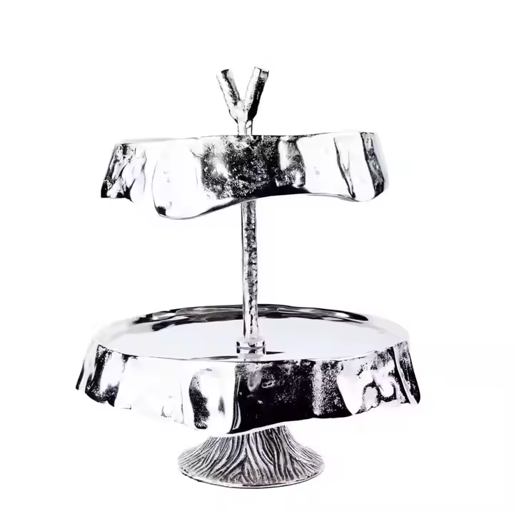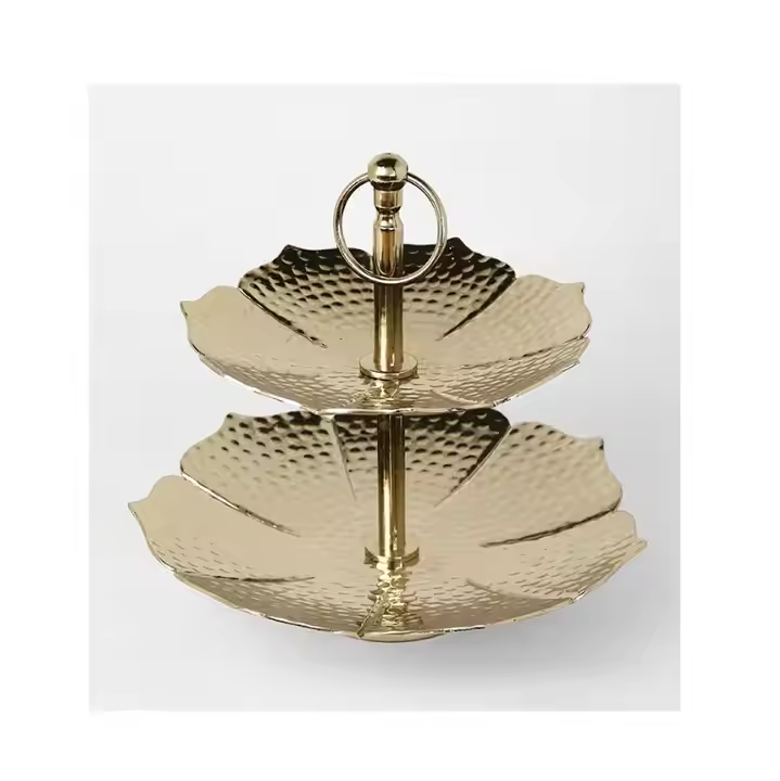 แท่นวางเค้กตกแต่ง2ชั้นสำหรับห้องครัวและอุปกรณ์ทำขนมที่ทำจากโลหะชุบทองสำหรับงานปาร์ตี้ในโรงแรมตกแต่งด้วยการตกแต่ง impex