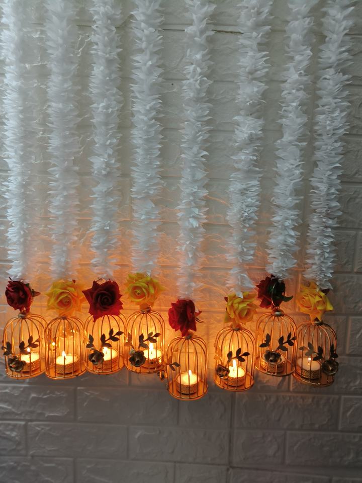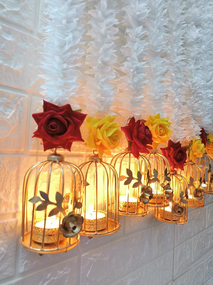 เชิงเทียนตกแต่งด้วยดอกมะลิสีขาวสำหรับตกแต่งบ้าน Diwali Night Decoration, ปีใหม่, คริสต์มาส, ของตกแต่งบ้านดูอบอุ่น