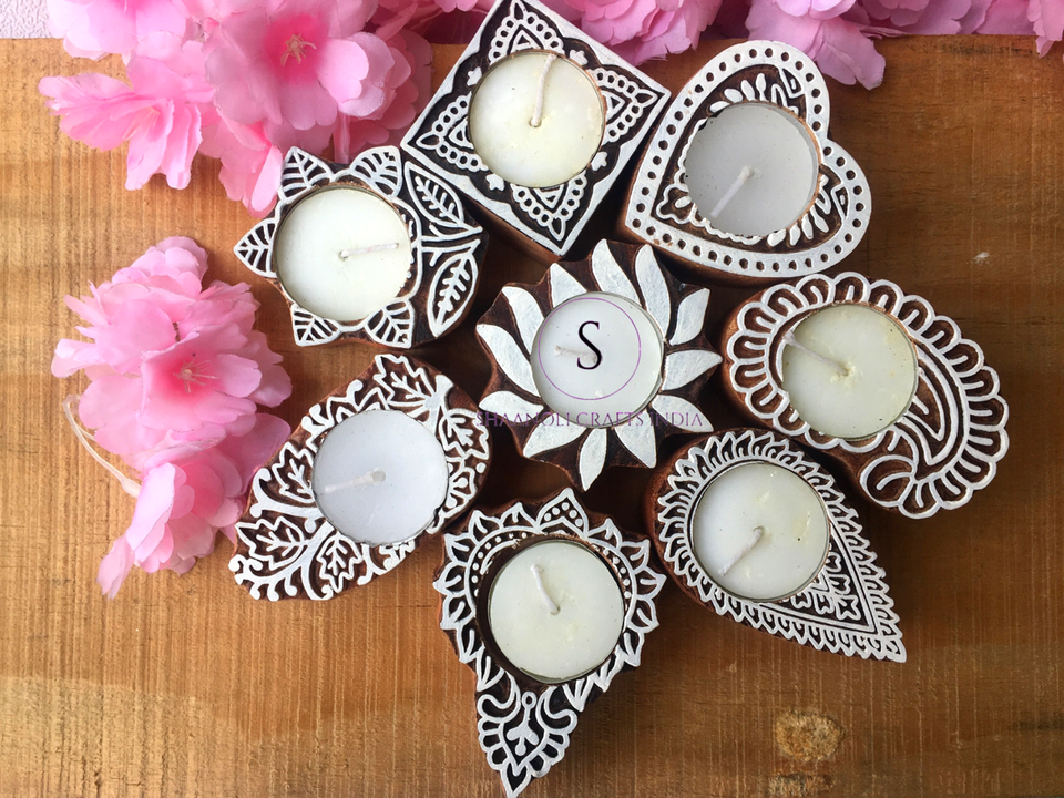 เทียนตกแต่งพร้อมเชิงเทียนไม้ทำมือสำหรับคริสต์มาสและของชำร่วยงานแต่งงาน เชิงเทียนดีไซน์เนอร์