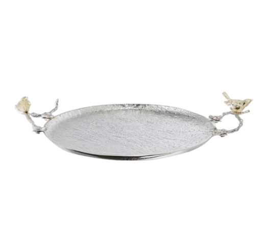ถาดโลหะสำหรับใส่อาหารและเครื่องดื่มมีหูหิ้วตกแต่งถาดโลหะสำหรับจัดเก็บและจัดอาหาร
