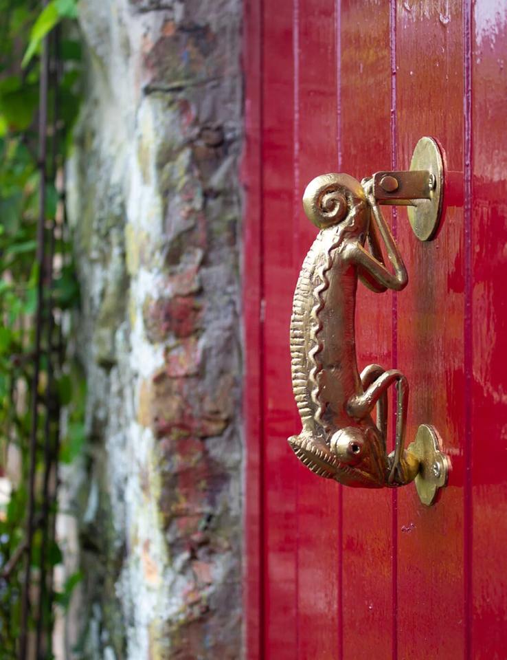 กิ้งก่าตกแต่งที่เคาะประตูสีทองสำหรับบ้านสำนักงานโรงแรมกระท่อมวิลล่าและสัตว์ป่าที่ได้แรงบันดาลใจจากการตกแต่งทางเข้า
