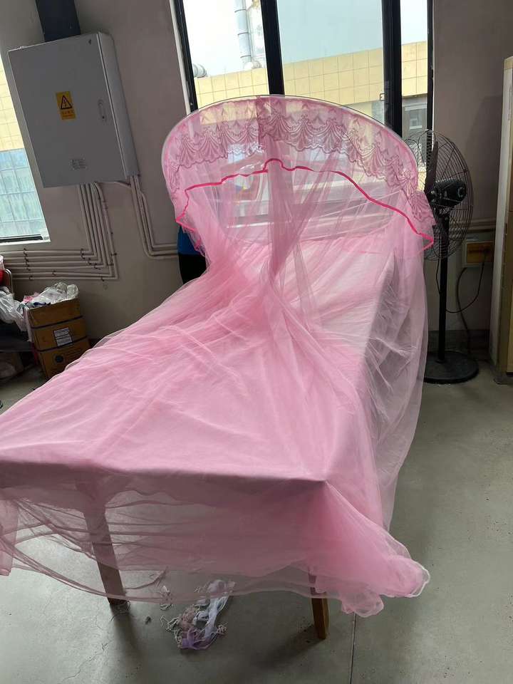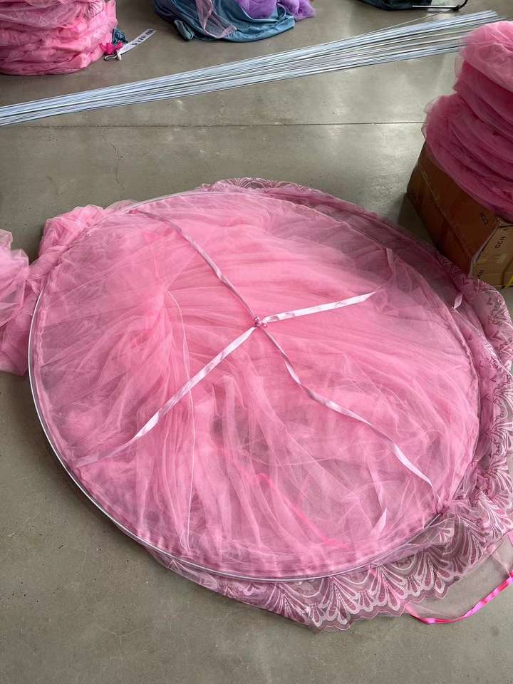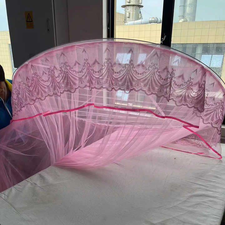 มุ้งกันยุงทรงกลมประดับด้วยลูกไม้มุ้งกันยุงเส้นใยโพลีเอสเตอร์สำหรับเตียงมุ้งกันยุง