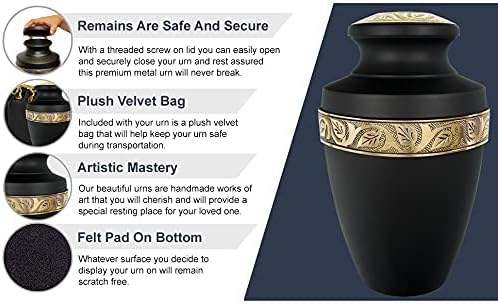 โกศตกแต่งสำหรับขี้เถ้าของมนุษย์สำหรับงานศพของผู้หญิงและผู้ชายผู้ใหญ่เพศหญิง-สีดำรูปแบบชีวิตขนาดใหญ่แกะสลักที่ระลึก